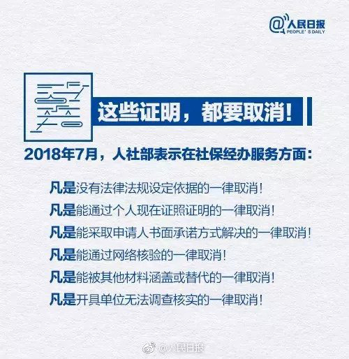 其实在2018年9月,人民日报微博上表明以下奇葩证明不再开具