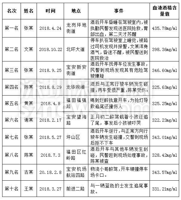 2018年深圳交警查处十大“虎王”案例: