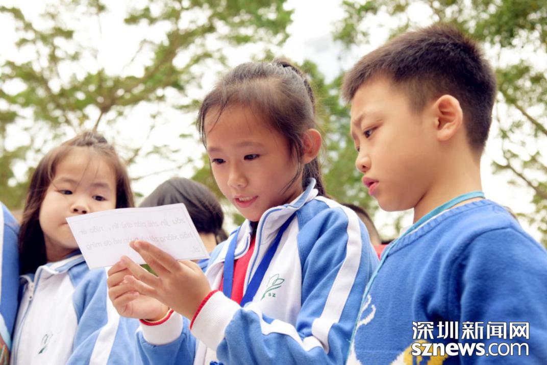 深圳新闻网2019年1月11日讯 (记者 曹园芳)“天上的星星数不清。”“我把石头放进水里。”“我有一盒彩色的蜡笔。”……1月10日,“趣建绿韵笔架神秘王国”华新小学一年级语文能量游戏大闯关在笔架山公园举行。