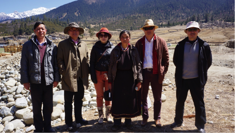 陈可石与鲁朗小镇工程总指挥蔡家华在工地选址(活动主办方供图)