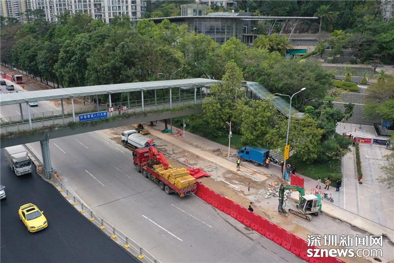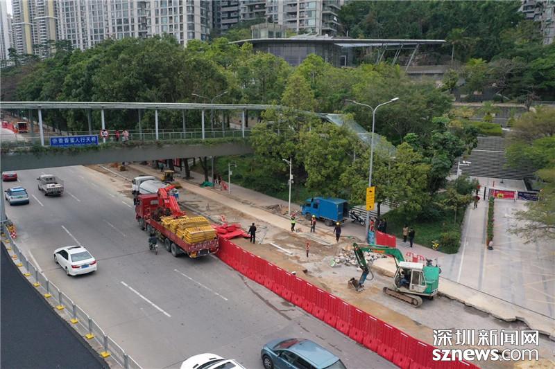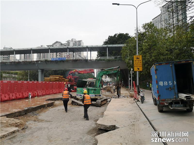 福田侨香路是人大代表杨勤调研的第二个点,从现场可以看到,目前侨香路人行道正在进行施工,不少大型机械正在作业,发出阵阵轰鸣声,来往行人只能绕道。