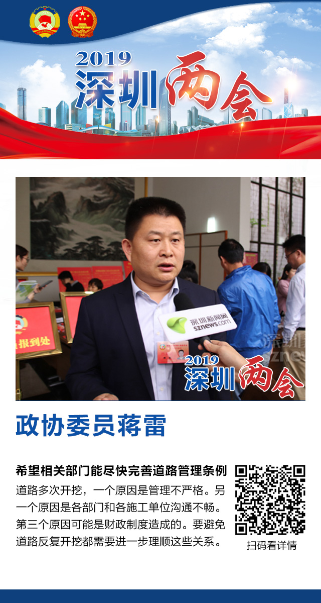 深圳新闻网2019年1月17日讯 深圳市政协六届五次会议1月16日开幕,记者就全市范围内出现的道路反复开挖向政协委员们征求解决良方,委员们表示,在(道路反复开挖)这件事情上,我们每个人都是受害者。只有各部门一盘棋,让规划更有前瞻性,让城市建设慢下来,才能解决问题,减少给市民生活带来的各种不便。下面让我们一起来看看委员们的观点。