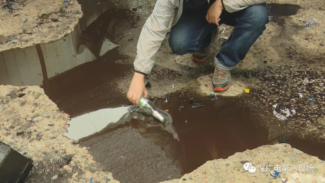 记者在地面上提取了一些废弃液体,经过PH试纸检测,酸性数值在1到2之间。也就是说,这些液体呈强酸性。