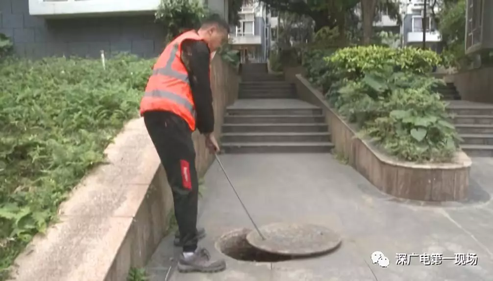 民治环保所的执法人员来到民乐水库后,经过了简短的排查,指明在丰泽湖山庄小区15栋、16栋之间的一个污水井,存在很大的问题。