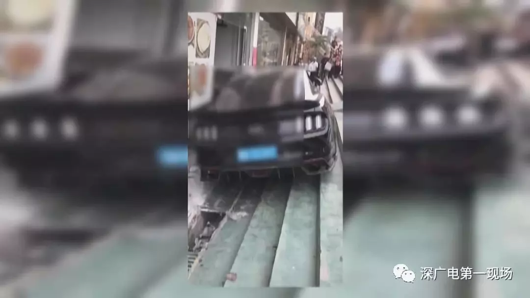 深广电第一现场2019年1月22日讯 21日早上8时12分,龙岗区横岗街道力嘉路109号附近有一辆黑色福特野马轿车突然失控冲向人行道撞倒数名行人后越过阶梯,撞停在一家餐饮店门口。其中,一名女子被撞不幸身亡,记者在现场看到了女子的丈夫,他告诉记者,就在事故发生前几天,妻子还说要一起回老家过年的。
