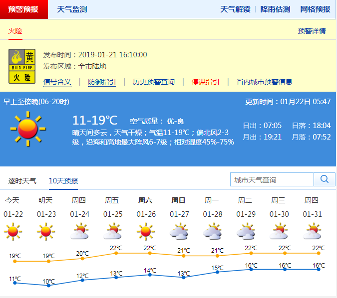气象局提醒市民,22-23日早晚寒冷,请注意及时增添衣物,做好保暖措施;寒冷天气需严防一氧化碳中毒,浴室应注意通风良好,注意燃气热水器使用安全,严禁使用直排式和烟道式热水器;22-27日空气干燥,请注意用火安全。