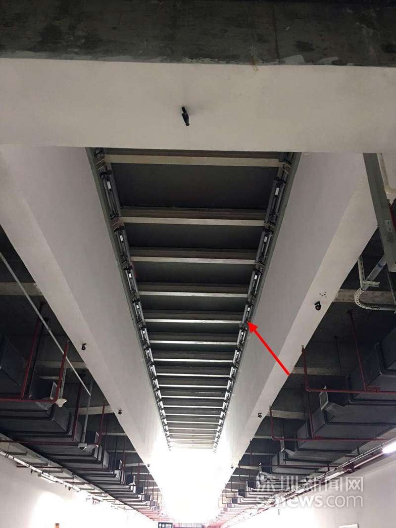 激光位移计安装在地下车库的顶端(红色箭头处),记录位移数据(王启文供图)