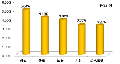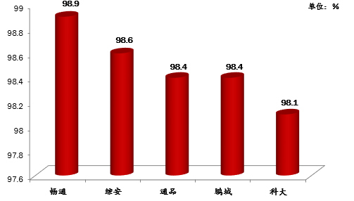 第四季度教练员点评占比最高的前5名驾校分别为:科大、畅通、鹏安、广仁、福永照明。