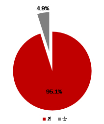 截至2018年12月31日,驾培行业教练员以男性为主,其中,男性教练员有6065人,占整体教练员的95.1%,女性教练员有315人,占比4.9%。