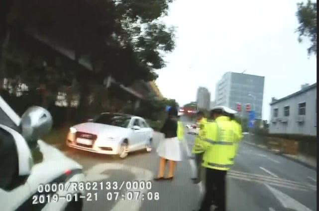 这名少妇多次拒绝配合呼气酒精测试,但交警还是苦口婆心地劝。见“装傻”不管用,少妇干脆卖萌,试图让交警网开一面。