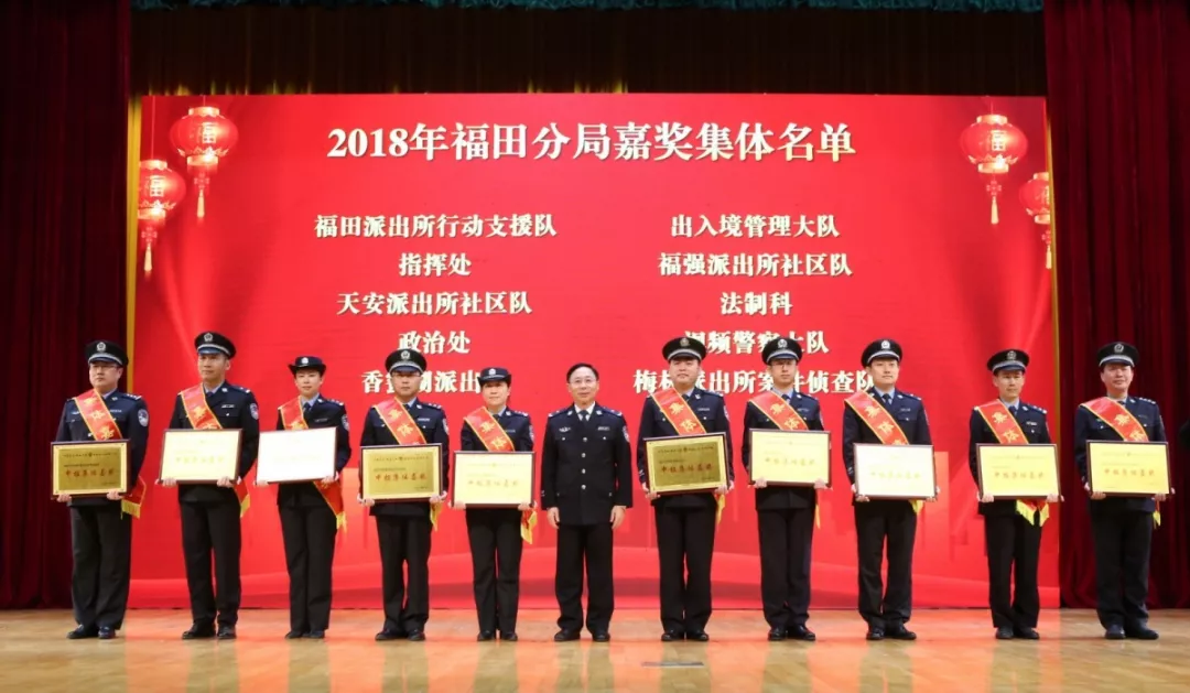 2018年,在深圳市公安局和福田区委区政府的坚强领导下,福田公安分局坚持以人民为中心,强力开展“基础夯实年、科技应用年、改革攻坚年”建设,积极推进公安大数据和智慧新警务战略,深入开展扫黑除恶专项斗争,深化“放管服”改革……警务效能显著提升,治安基础更加扎实,管理服务更加温暖。“星光不问赶路人,时光不负有心人”,福田警队所有民警和辅警不畏风雨坎坷,用365个日夜的默默坚守付出交出了一份平安满意的优秀答卷,让市民群众有了更多、更直接、更实在的获得感、幸福感和安全感。