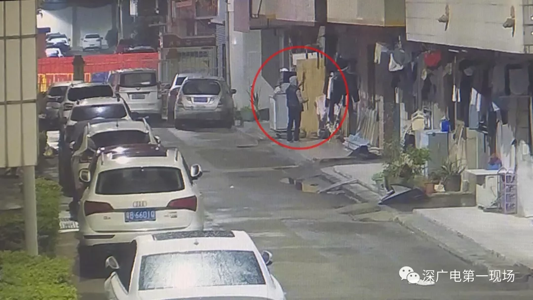 坪山派出所民警也是对几起案件进行并案侦查。通过调取辖区监控,一名形迹可疑的男子走入警方的视线。为了偷几串腊肉,该男子居然还有一点“反侦察”意识,全程戴着口罩和帽子。