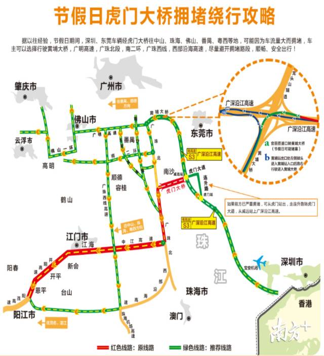(2)广深沿江高速—东二环高速—广珠北线—广澳高速—西部沿海高速—沈海高速—往佛山、中山、江门方向。