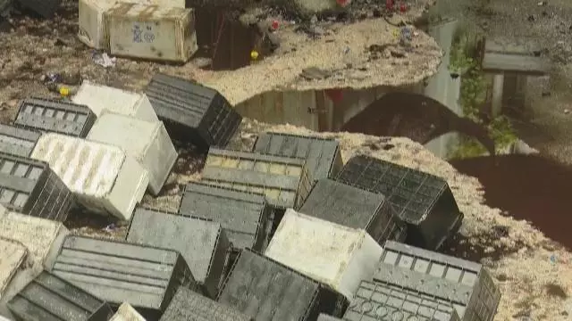 执法人员进入时,老板和工人刚逃跑,只剩1名看门男子。而带有强腐蚀性的电池废液,无任何处理满地横流,现场地表和围挡的金属,都已被严重腐蚀。