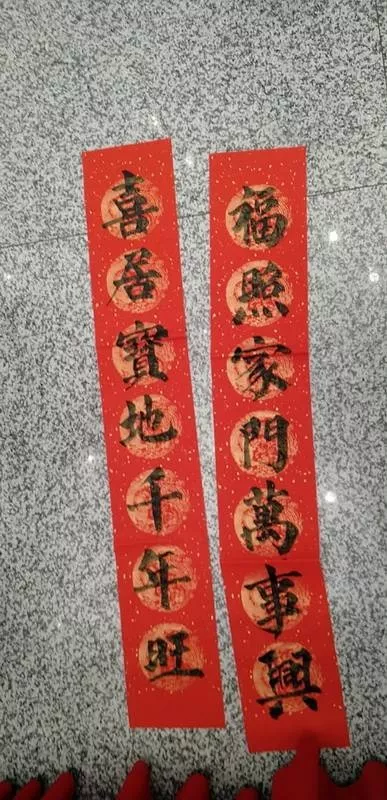 书法家写下:喜居宝地千年旺,福照家门万事兴。