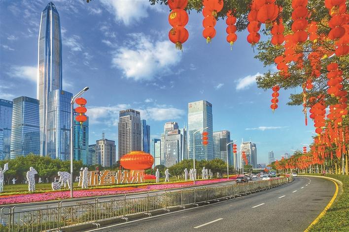 深圳特区报2019年2月1日讯 连日来,许多市民注意到,我市深南大道等主要道路的路灯杆上挂起了大红灯笼,道路花坛中也更换了鲜花。全城正欢快喜庆地进入春节模式,浓浓的年味儿滚滚袭来。而市民中心水晶岛两侧高达15米的巨型灯笼首次红火亮相,更是吸引了市民的目光。
