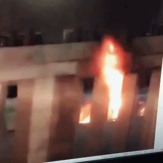 1月28日晚9点,深圳档案中心4楼发生火灾现场浓烟滚滚
