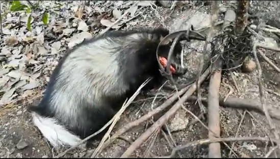 1月28日,市民马先生在光明阿婆髻山登山时,发现一只野生动物被偷猎者的铁夹子夹住了