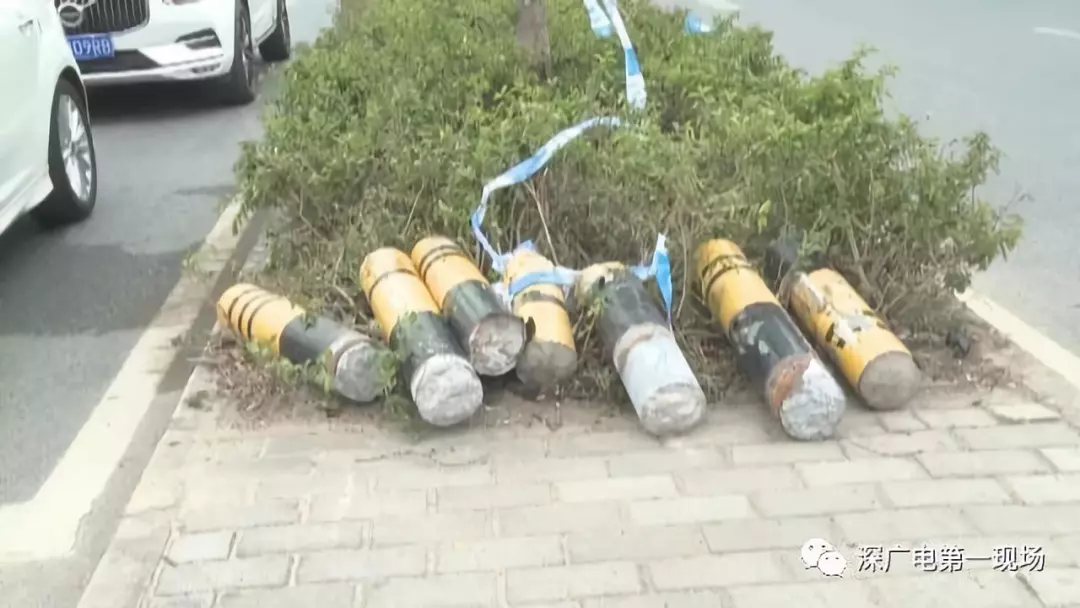 这一撞还不算完,车辆带着惯性接连冲断了交通信号灯和整整6根碗口粗的交通隔离柱,随后才在绿化隔离带里停了下来。
