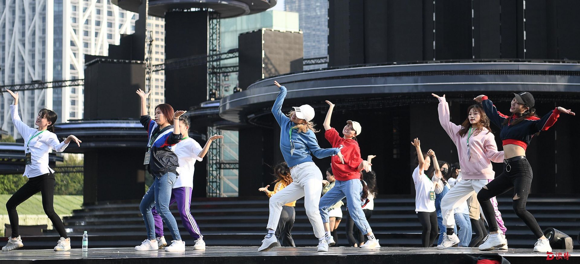 “你们的目光所及都是舞台!”当记者当天下午来到市民中心广场时彩排,分会场总导演孙滨指着搭建的主舞台、舞台前方的阶梯和广场、以及舞台后方的高楼大厦这样说。