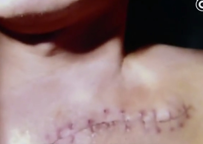 据何先生回忆,当时他正在打球,篮球架不知何故,"自己就砸下来",导致其当场昏迷、锁骨骨折。从现场拍摄的视频中可以看到,倒塌后的篮球架框严重变形,幸好与其一同打球的三四个球友合力将他从篮球架下抬出来,并拨打了120。