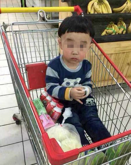 消息配发的图片显示,一名年幼的儿童坐在超市的购物车里,一脸天真烂漫的模样。图片中的儿童指称是被拐的女孩。