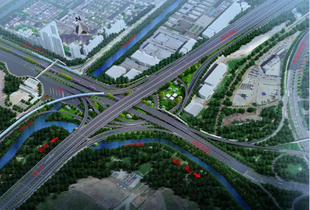 新城立交完善工程是南坪快速二期与宝安大道的衔接点,主要是对新城立交的交通转向及联络功能进行完善,采用部分互通定向涡轮立交,新建16条匝道,匝道总长8.2公里。