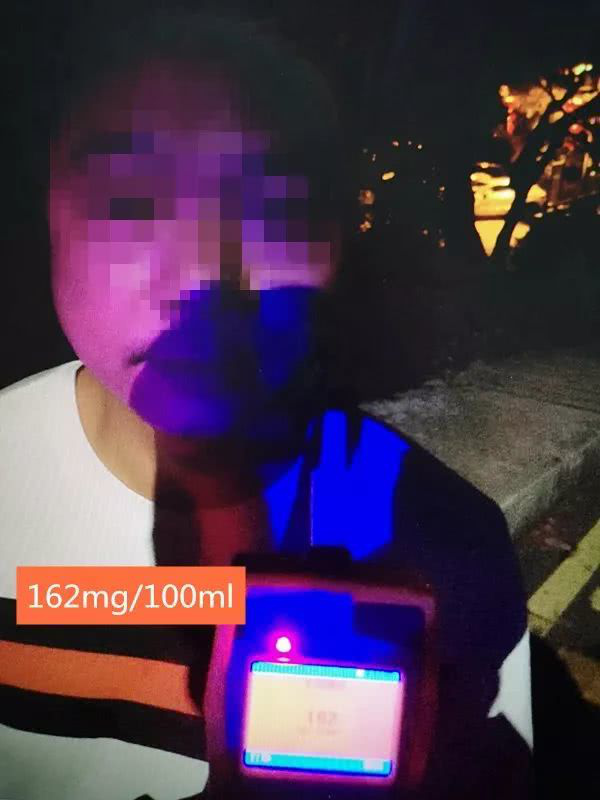 黑色小车驾驶人廖某浑身酒气,经现场呼气式酒精检测结果为162mg/100ml!