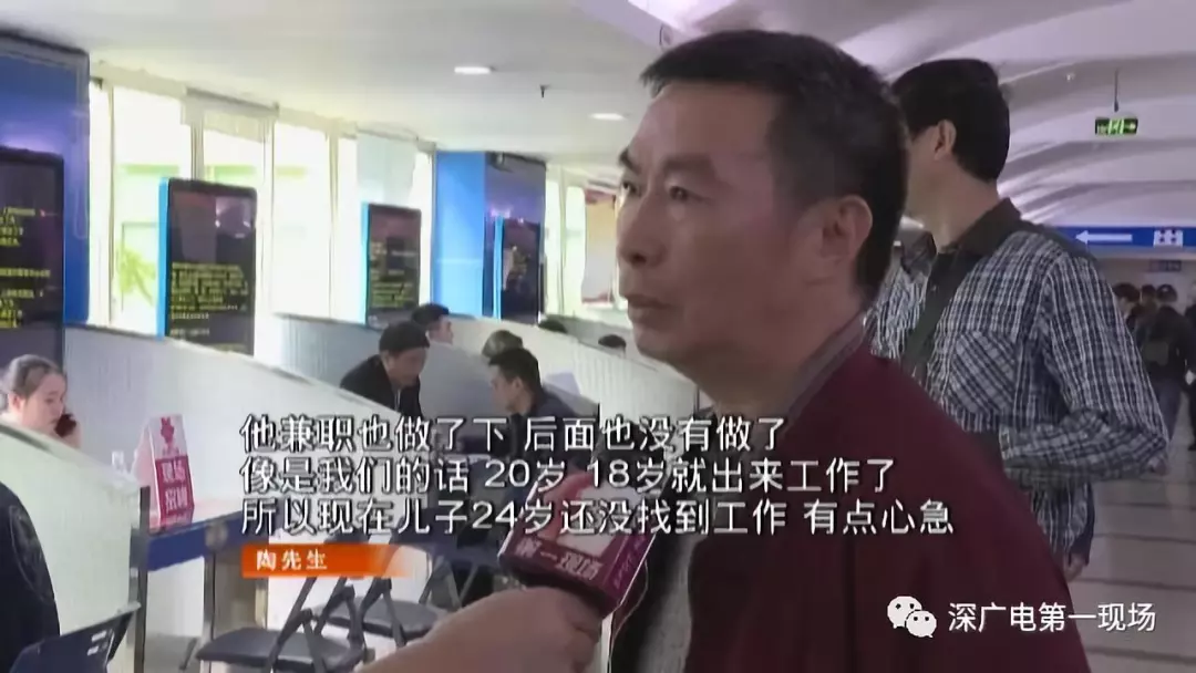 一位求职者和父亲一起来到现场,这位父亲陶先生告诉记者,儿子毕业后也有找过兼职,但是经常待在家里,他觉得儿子年纪已经24岁,不算小了,所以有些着急。