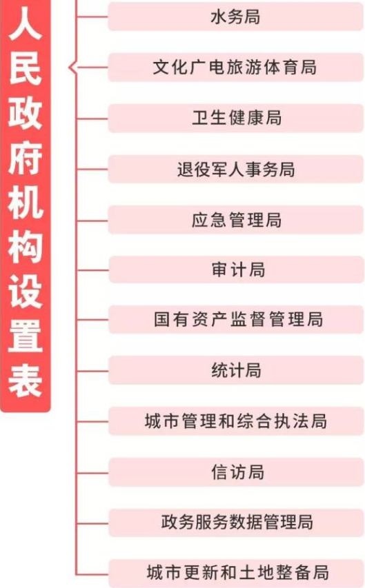 二是践行以人民为中心的理念。在政务服务数据管理、文化广电旅游体育、退役军人事务等领域组建相应的新机构,更好推动公共服务、社会管理各项事业发展,加大力度保障和改善民生,努力解决市民群众最关心最直接最现实的利益问题,更好满足人民日益增长的美好生活需要。