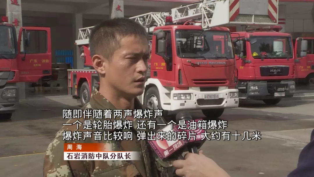 由于陈小姐及时报警,石岩消防中队官兵在起火不久后便到达现场。到场后,消防立即要求还在救火的两名司机撤离。
