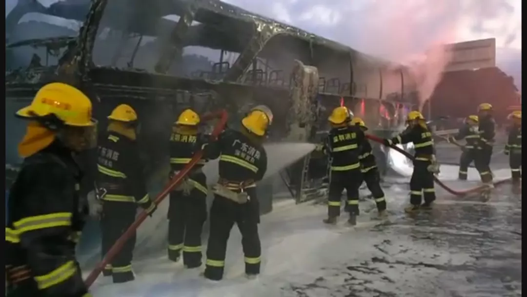 通过泡沫灭火剂覆盖的方式,火势最终得到控制,但整个大巴也被烧的只剩下框架。车上的两名司机介绍,他们从桂林发车来到深圳,因为刚刚在附近车站下客,车上并无乘客。而起火原因两人也并不清楚。