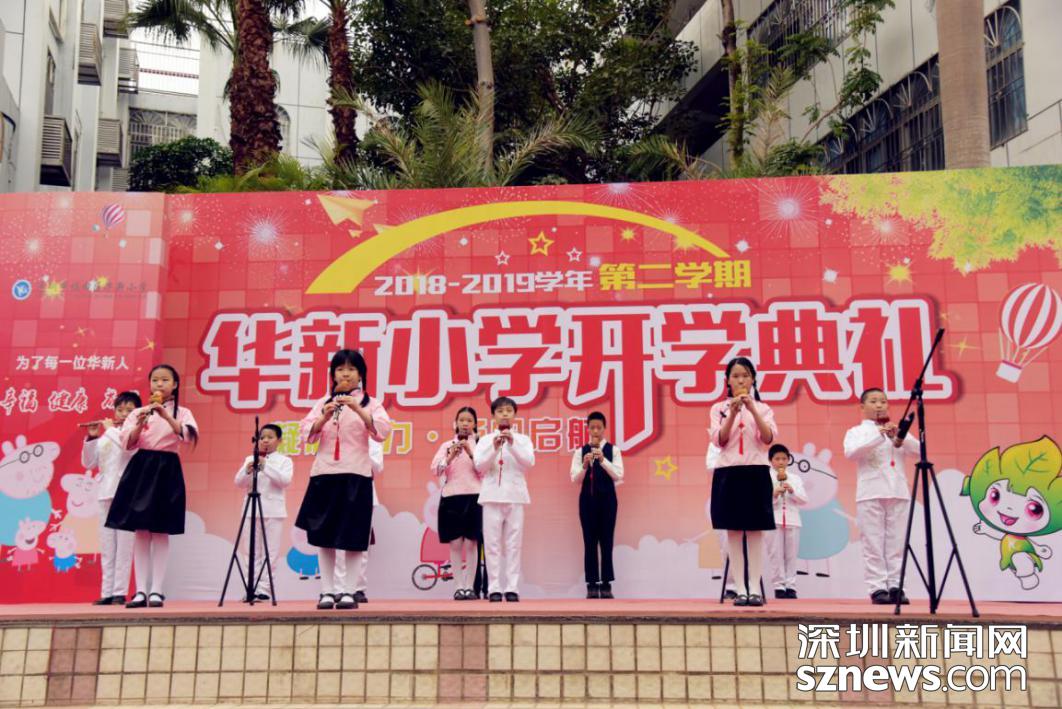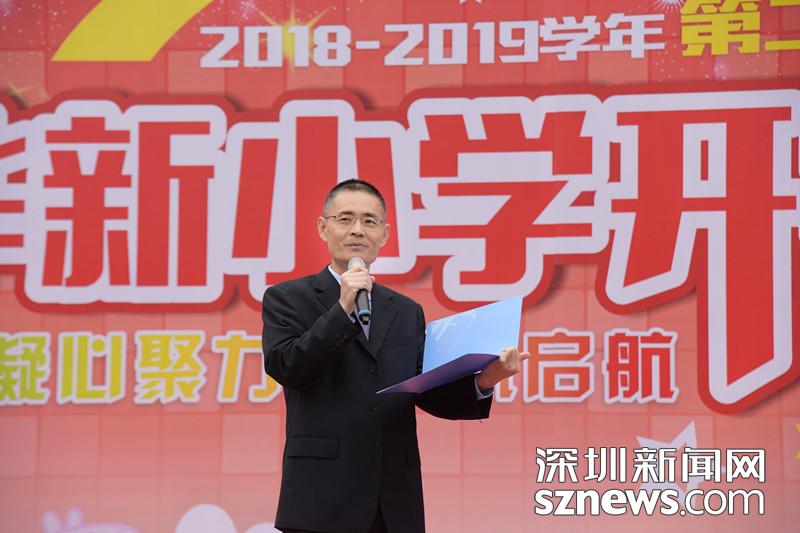 华新小学校长张伟在开学典礼上讲话。深圳新闻网 曹园芳/摄