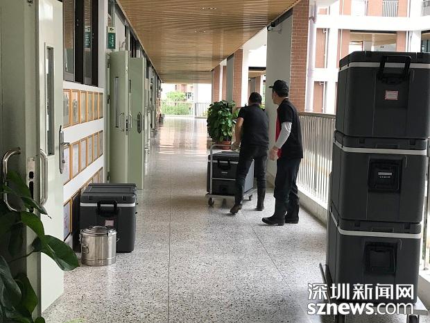 送餐人员在上午课程结束前将午餐送到每个班级门口