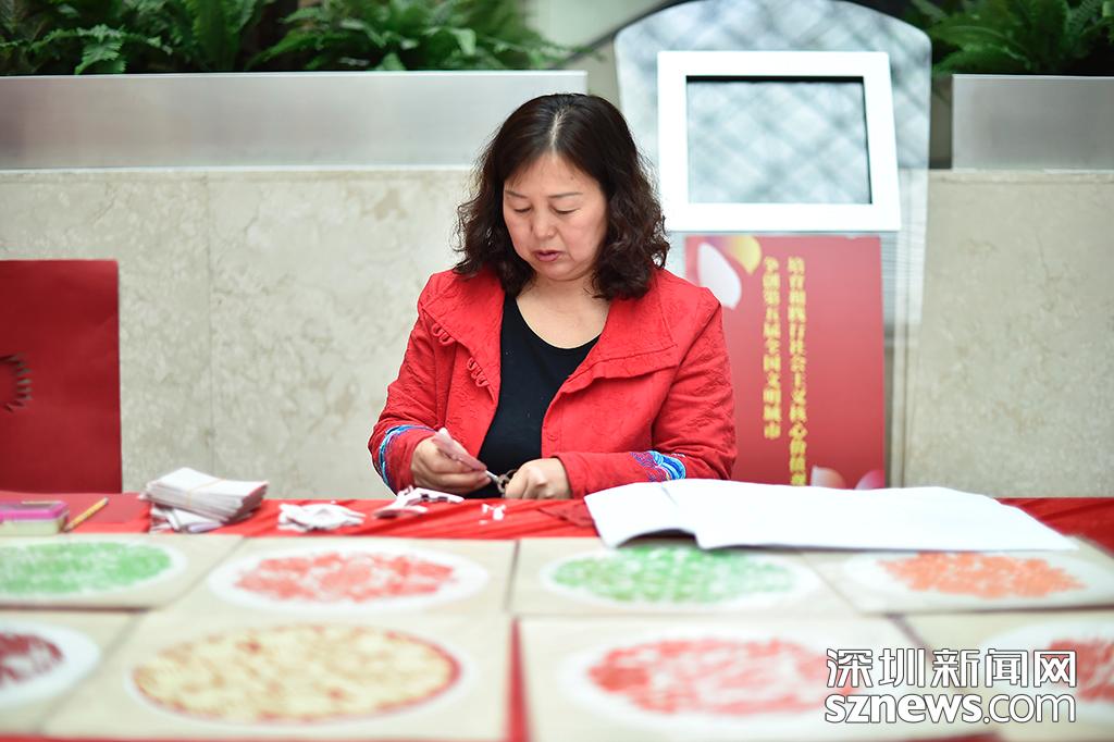 活动现场的剪纸艺人正在创作,剪纸艺术已列入国家级非物质文化遗产名录,也列入了联合国“人类非物质文化遗产代表作名录”。