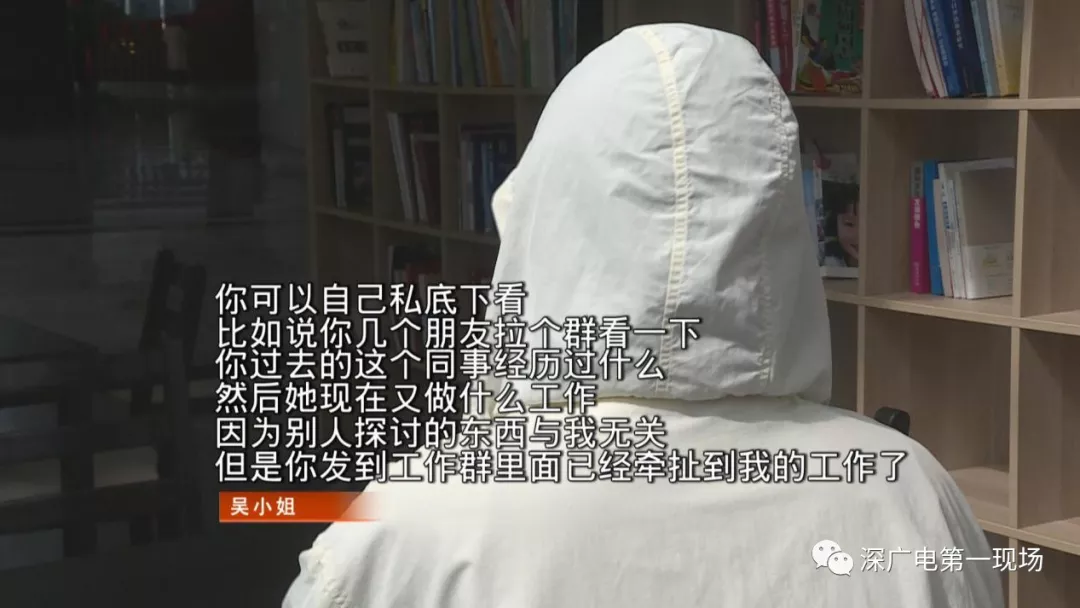 深广电第一现场2019年2月19日讯 今年20多岁的吴小姐是深圳一家公司的员工。昨天晚上,吴小姐打开了公司的微信工作群,发现她的同事陈先生在工作群,发布了吴小姐之前参加选美比赛的相关宣传报道,和领奖时候的照片,这让吴小姐一下子惊呆了。