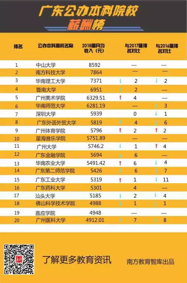 ▲广东公办本科高校薪酬20强,中大、南科大、华工位列前3位。