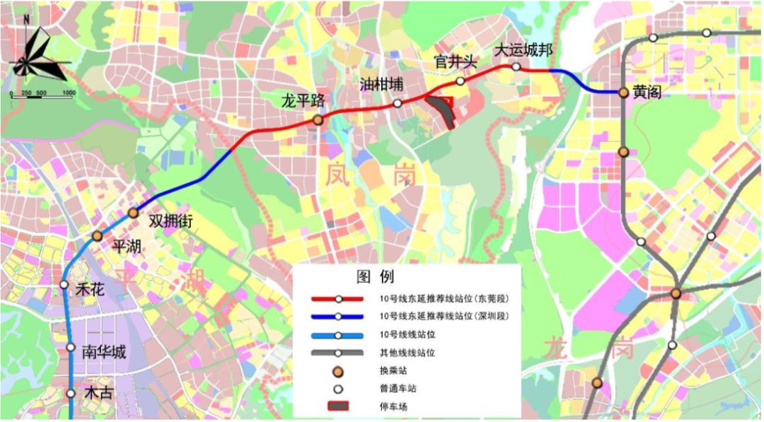 10号线东延是联系平湖、东莞凤岗及大运新城的普速线路,主要功能为加强龙岗中心城与平湖、坂雪岗的联系、促进深莞一体化。东延线路由在建地铁10号线双拥街站后引出,出站后转向东北方向,下穿凤凰山国家矿山公园,之后进入东莞,东莞段内沿龙平路敷设,在东北师大益田小学北侧向东南下穿武深高速、盐龙大道进入清林路,接至在建16号线黄阁站。线路全长约9.8km,设站5座,采用地下敷设方式。