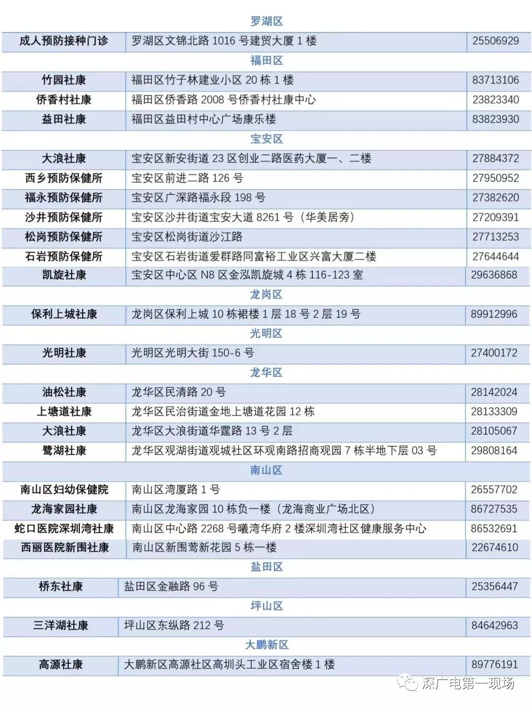 接种门诊名单