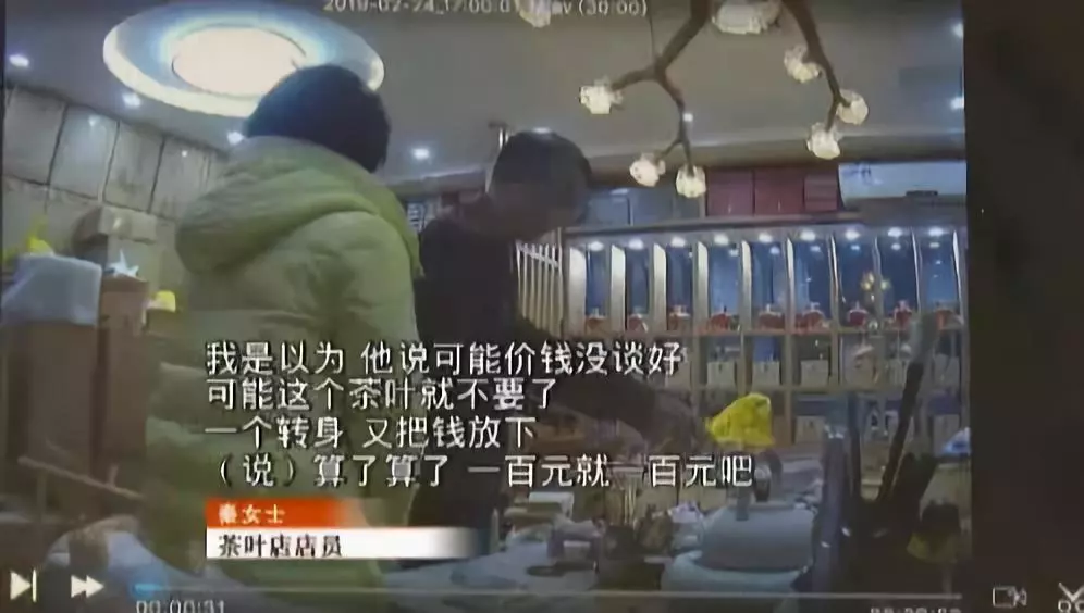据小娟回忆,此时顾客让她到门口拿塑料袋装茶叶。而秦女士已经拿好了茶叶,回到了这位顾客的身边。秦女士说,这名顾客特意问她,这个茶叶价钱是不是80?她回答不是,然后顾客就说不要了,但是一转身又说100块就100块吧。