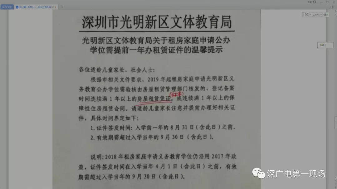 如果租的是商品房,是可以办《房屋租赁凭证》,也就是红本,没有任何限制;但如果租的是农民房,办的是《房屋租赁信息》,也就是蓝本,目前的规定是,在2019年5月1日前停止受理,而且现在就算去办,有效期也只能到2019年12月31日。而以往教育部门,要求这个证件的有效截止日期需在入学后一个月。他们担心这个证件会影响孩子入学。当时我们栏目报道后,光明教育局给家长们发了一个指引。