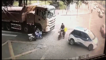 据说,当时是奶奶骑车送小孩上学,从泥头车前经过时遭碾压