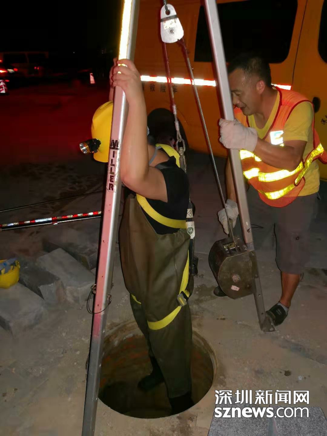 深圳的夏天很长,随时赶上用水高峰,加上白天天气炎热,这种下井摸排通常在午夜进行。