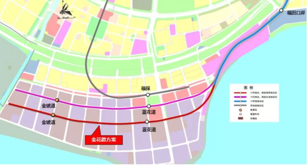 10号线南延线路起自在建10号线福田口岸站,向西南敷设,以金花路和金葵路交叉口为终点。线路全长约3.0公里,采用地下敷设。