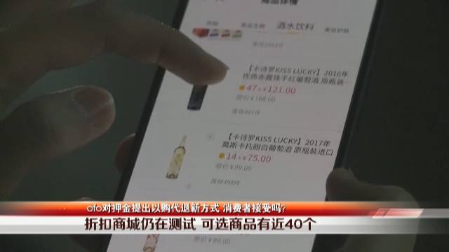 记者打开ofo的App,押金未退的用户,都多了一个“折扣商城”的功能,用户可以在商城里,将押金兑换成购物金币,99元押金可以兑换成150金币,199元押金可以兑换成300金币。