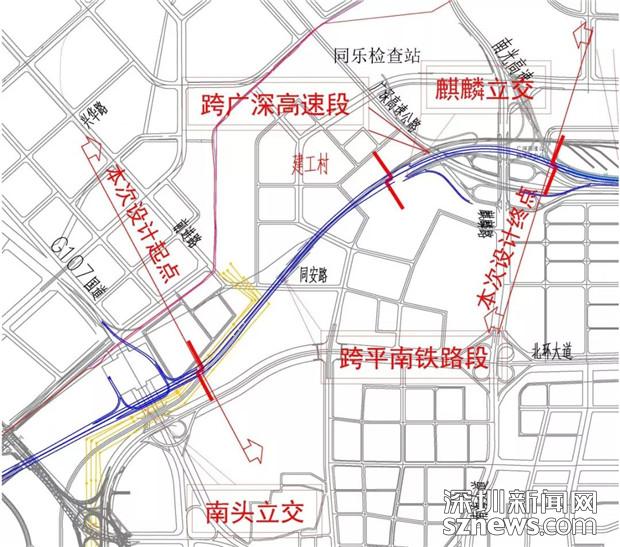 据悉,南坪快速路(二期)A段工程位于深圳市南山区,主线从南头立交至南坪快速路一期的塘朗立交,全长11.178公里。该道路设计标准为城市快速路,双向八车道,设计行车速度80公里/小时。2012年,南坪快速路(二期)A段塘朗立交至南光高速段通车,由于受到上跨平南铁路和广深高速影响,南光高速至南头立交段仍处于施工阶段。