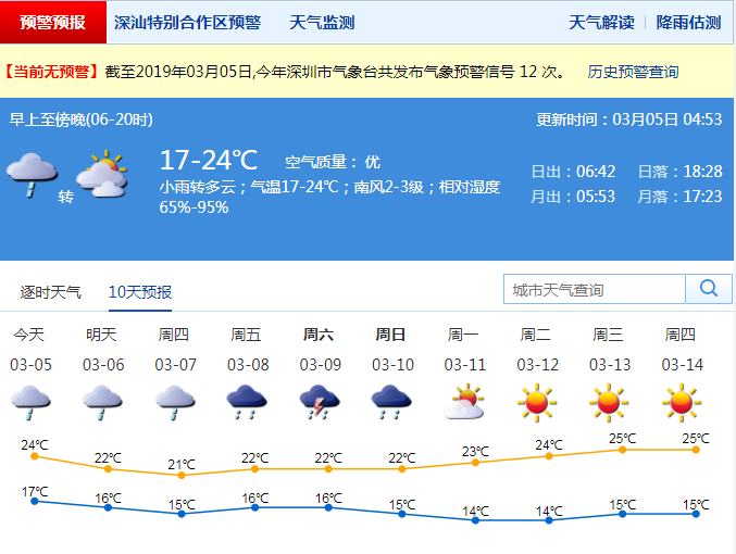 深圳新闻网2019年2月5日讯 昨晚起深圳就风雨交加,虽然现在雨势减缓,但是,市气象台预测,本周多降雨,并可能伴有强对流天气。