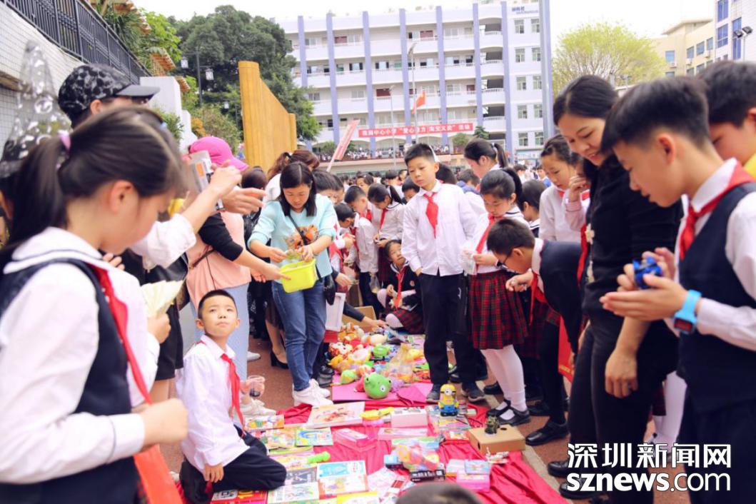 3月4日下午,观澜中心小学操场上人声鼎沸,“爱心接力,淘宝义卖”大型义卖活动隆重举行,叫卖声、欢笑声此起彼伏,全校2000余名师生参与该活动。