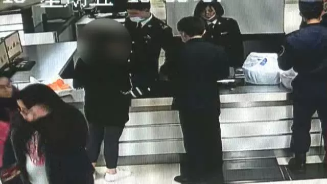 下午6点半左右,口岸迎来双向客流高峰,一名女子背着背包、手提黑色塑料袋准备在罗湖口岸过关,关员看她神情凝重,一直东张西望,因此把她拦下进行x光机检查。