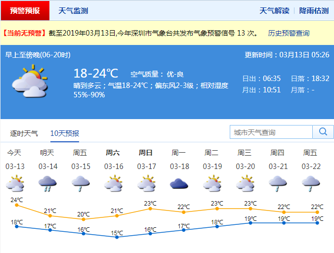 深圳新闻网2019年3月13日讯 这周一开始,“流浪的太阳”终于回来了,深圳人总算实实在在地享受了两天阳光沐浴,把多日积累的衣物、被子也都洗了晒了。但是,14日开始,阴雨又将上线,局部大雨,伴有气温略降。